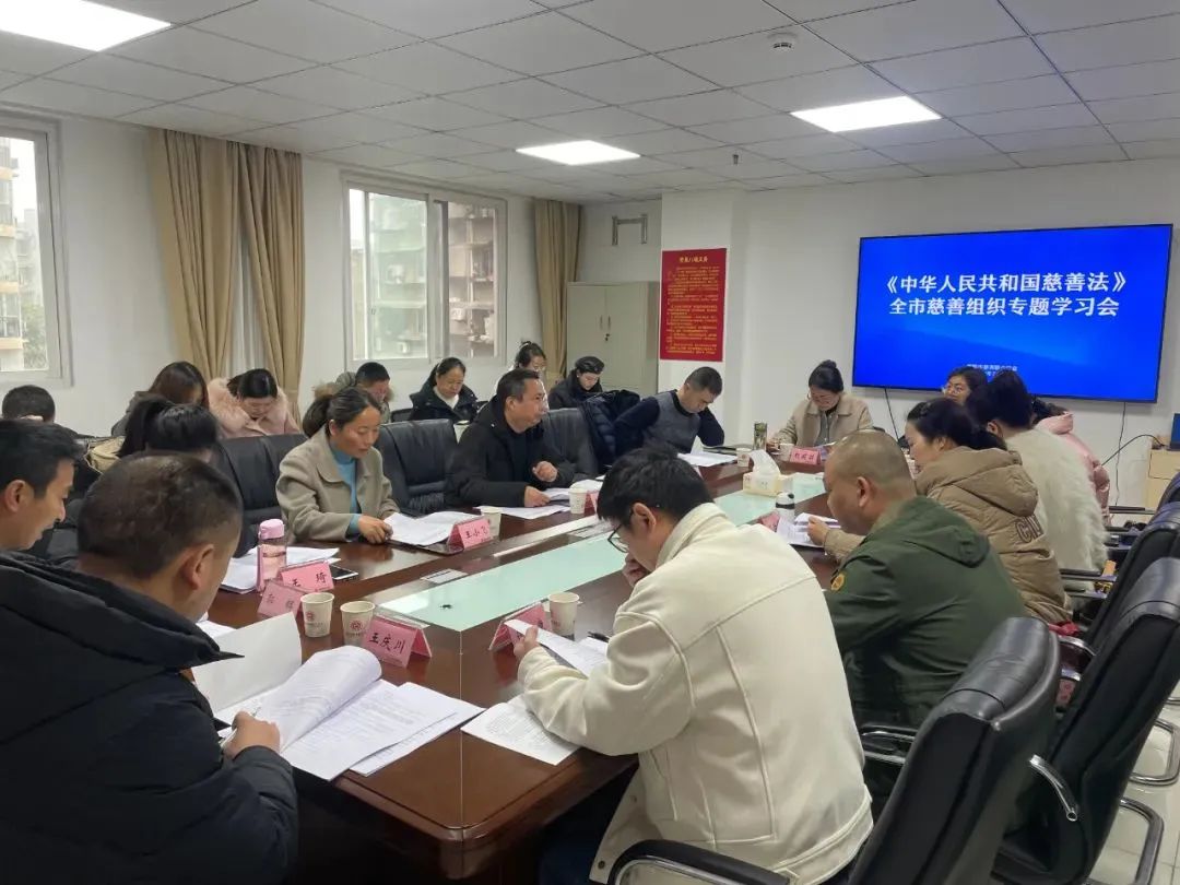 2024年3月5日上午,绵阳市慈善联合总会组织全市慈善组织专题学习新修改的《中华人民共和国慈善法》(以下简称《慈善法》)。会议在绵阳市慈善事业服务中心举行,全市各县(市区)、园区慈善工作主要负责人均到会出席。