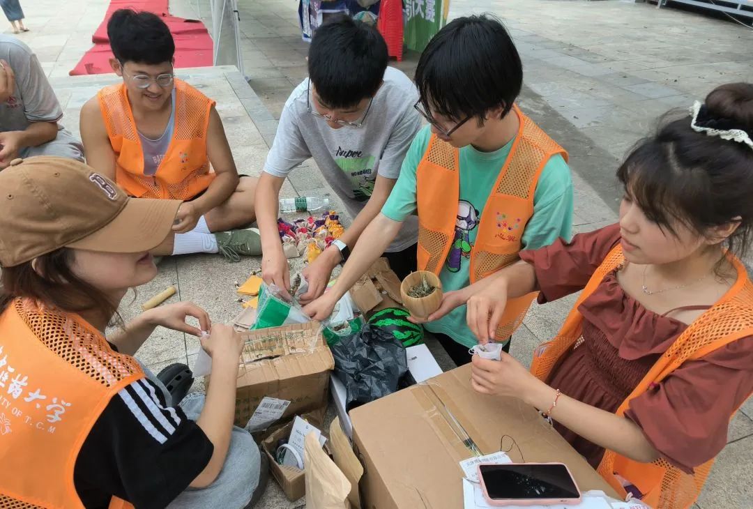 次日,实践小队在沙溪镇居民活动广场开展传播中医药文化活动,为居民们和孩子们讲解了中医药文化的悠久历史与核心精髓,带领大家共同认识和了解生活中常见的中药材及药用价值和应用场景。通过趣味横生的讲解,居民与孩子们学会了如何根据个人体质特性,挑选适宜的药膳进行日常调养,体验中医药“因人而异,辨证施治”的智慧。小队还特别强调了中药的相生相克之道,让社区居民深刻理解到中药使用中的科学性与艺术性,必须遵循自然法则与医学原理。为加深理解与记忆,实践小队巧妙设计了知识竞答环节,现场气氛热烈,居民与孩子们踊跃参与,在欢声笑语中既检验了学习成果,又进一步激发了对中医药文化的浓厚兴趣与探索欲。在特色游园会上,设置了传统投壶、中药驱蚊包制作、中药材趣味贴画等活动,寓教于乐与参与者一同感受中医药以及传统文化的魅力,更在互动中深刻体会到了中医药与传统文化融合的独特魅力,共同编织了一段难忘的中医药文化体验之旅。